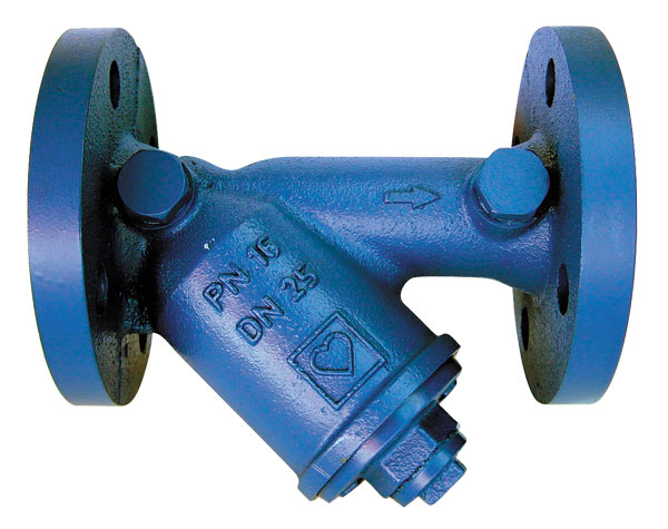 Фильтр-грязевик ГЕРЦ У-образной формы с фланцевым подключением. Тонкая сетка из хромо-никелевой стали. Размер ячейки 0,75 мм.