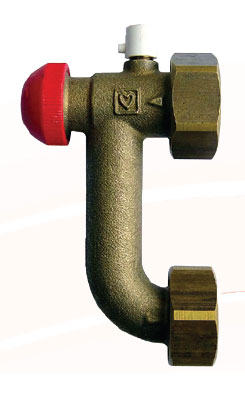 Термостатический клапан ГЕРЦ-Универсал-2. Угловой специальный клапан с воздухоотводчиком к конвекторам «Универсал» для двухтрубных систем. Уплотнение по плоскости прокладкой, цвет желтый, без покрытия. 2 гайки с прокладками в комплекте.