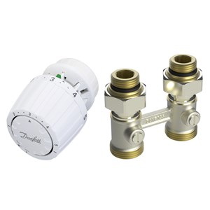 Комплект для радиаторов с нижним подключением, состоящий из клапана RLV-KS и термостата RA 2994 для установки на клапаны RA, прямой, межосевое расстояние 50 мм, с переходниками G 3/4 A; G 1/2 A