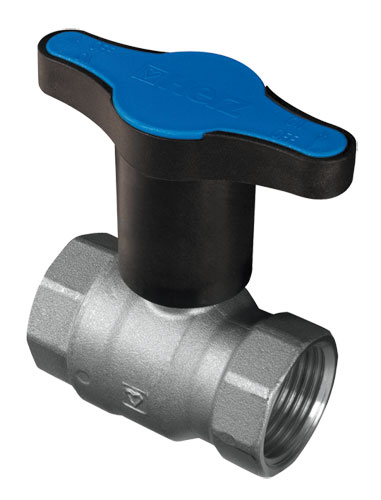 Корпус из штампованной латуни согл. EN 12420, никелированный, уплотнения из PTFE, хромированный полнопроходной шар. Внутренняя резьба по ISO 228. Диапазон температур от -30 °C до +150 °C (Вода от 0 °С до +110 °C), для всех неагрессивных сред, таких как вода, масло, воздух, топливо и смазочные масла.