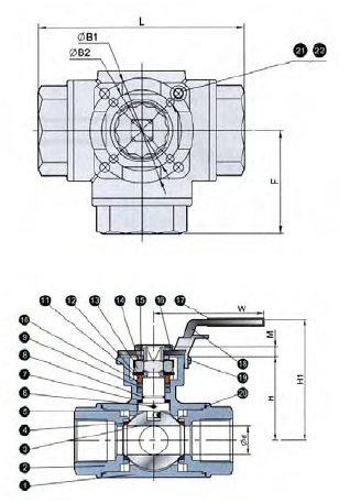 Кран шаровой трехходовой ´´L´´/ “T”- образный проход из нержавеющей стали