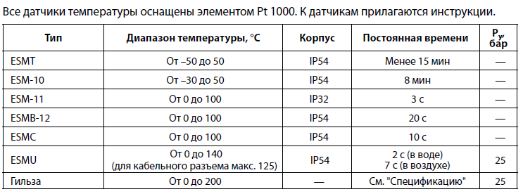 Датчики температуры представляют собой платиновые термометры сопротивления Pt 1000 (1000 Ом при 0 °C по IEC 751В).