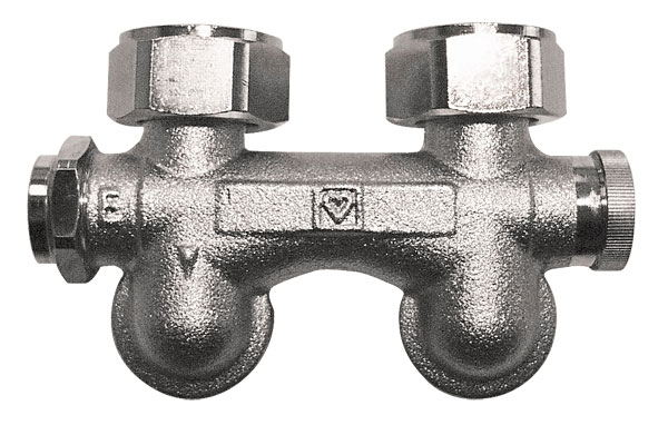 Узел подключения ГЕРЦ-3000 с байпасом, угловой, слив слева. Межцентровое расстояние 50 мм, подключение к радиатору G 3/4 накидной гайкой. Наружная резьба со стороны трубы для фитингов G 3/4, уплотнение “евроконус”. Фитинги для присоединения труб заказываются отдельно.
