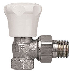 Вентиль ручной радиаторный ГЕРЦ-AS угловой. Скрытая, точная предварительная настройка посредством внутреннего дроссельного шпинделя. Стандартная модель с резьбовой муфтой, без возможности установки термостатической буксы.