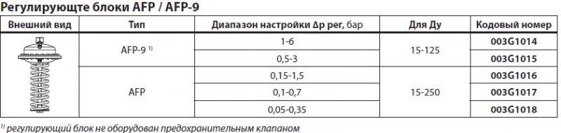 - AFP-9: 0,5-3 бар / 1-6 бар