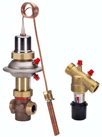 AVTQ – регулятор прямого действия с устройством для коррекции его работы в зависимости от расхода нагреваемой воды. Регулятор AVTQ предназначен для установки на скоростных водоподогревателях (как правило, пластинчатых) в системах горячего водоснабжения (ГВС) при отсутствии контура циркуляции. AVTQ предупреждает повышение температуры внутри водоподогревателя сверх 40 °С в случае резкого сокращения водоразбора в системе ГВС. AVTQ состоит из регулирующего клапана и установленного на нем термостатического элемента. Клапан терморегулятора монтируется на обратном трубопроводе греющего теплоносителя. Термостатический элемент связан импульсными трубками с датчиком расхода AVDO, который устанавливается на трубопроводе холодной (водопроводной) воды.